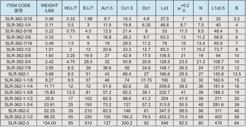 常規標記:  3/8 WLL1T  CE  SLR