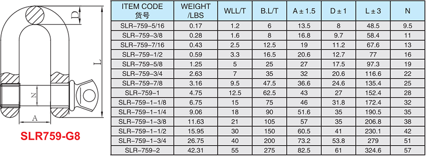 SLR759 8級螺絲銷合金鋼D型卸扣